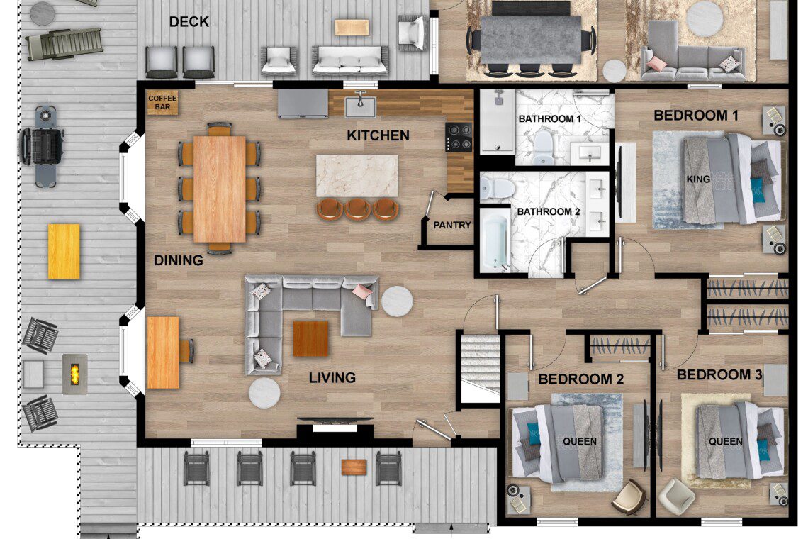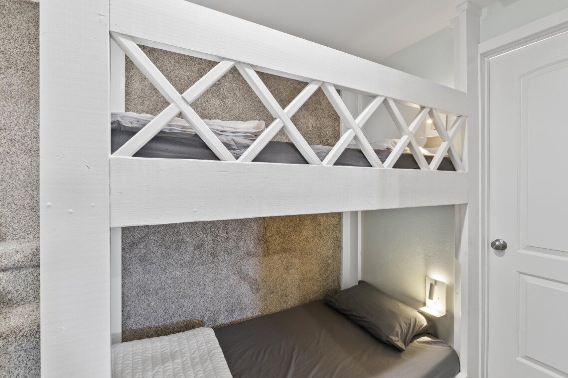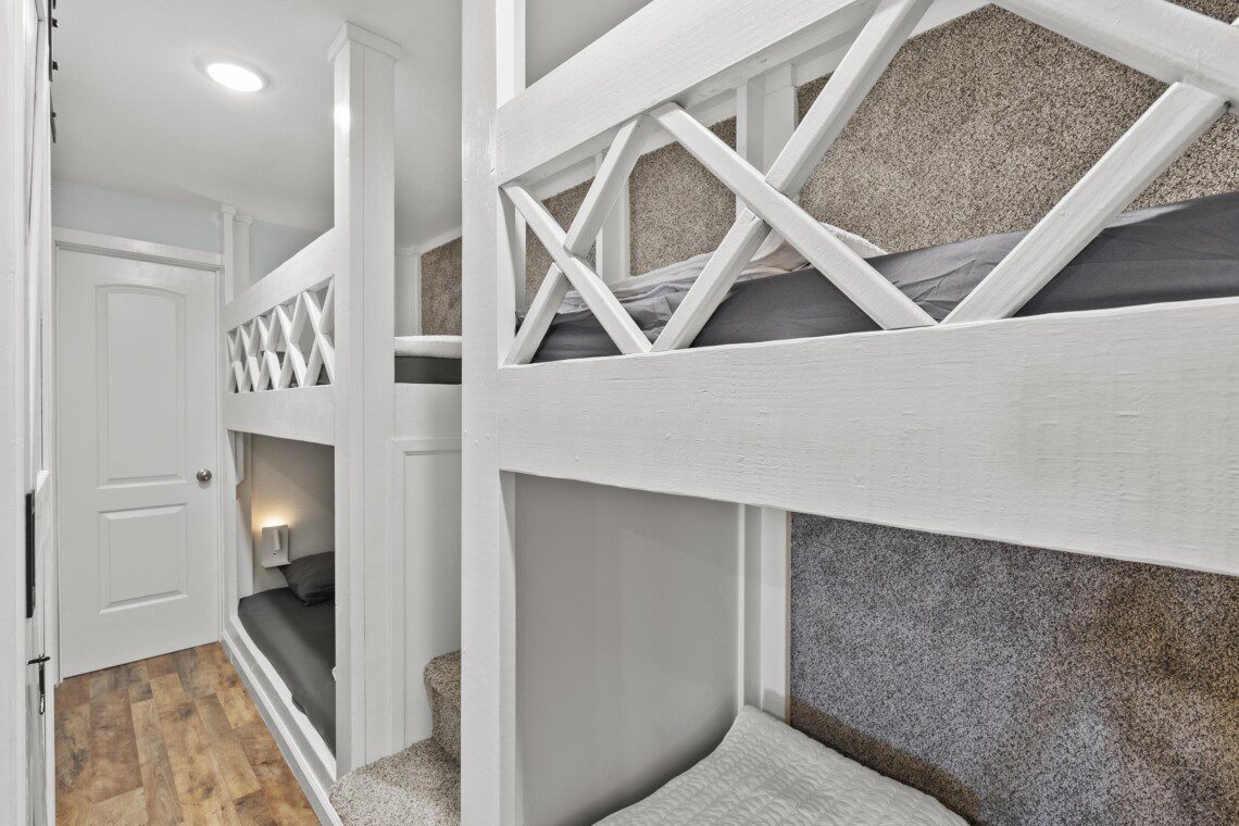 Our bunk area sleeps 4 guests. The single twin bunk beds are primarily designed with children in mind for optimal comfort. While adults can also utilize the bunks, they may find it less comfortable. Please keep this in mind when booking our home.